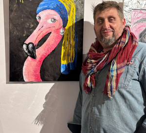 "Da sempre, il disegno e i colori mi hanno accompagnato mantenendo vivo in me l'Amore per l'Arte in ogni sua forma. Arte che mi è sempre stata accanto malgrado io l'abbia spesso trascurata. Arte che, alla fine, è venuta a galla prepotentemente spingendomi finalmente ad assecondarla nutrendola e coltivandola credendo in lei e in me stesso. Da questa maturata consapevolezza, voglia di crescita personale e bisogno di esprimermi,ho partecipato ad alcuni eventi di Street Art. Ho avuto quindi modo di collaborare e apprendere dagli Artisti che ho conosciuto. Grazie a questa "scuola in strada" ho man mano ricercato ed affinato il mio stile personale. Ed è in questo bellissimo percorso che ho incontrato ed individuato nel Fenicottero una sorta di Animale/Spirito guida. Colto dall'ispirazione ho immaginato Dante Alighieri come un fenicottero,e poco dopo ho iniziato la mia linea di ritratti/caricature dal titolo "Flaming-ohh!!!" ..… ...una sorta di tributo irriverente e spiritoso che strizza l'occhio alla Pop Art e coinvolge il pubblico, lo amalia e lo diverte coi vari personaggi curiosi e bizzarri. Ogni personaggio con le sue espressioni, dà vita alle varie sfaccettature della mia personalità, ai miei stati d'animo e alle mie passioni e ricordi più intimi. Spero che rimarrete piacevolmente impressionati dai miei amici Rosa e sono sicuro che risveglieranno il vostro bambino interiore. Io sono stato piacevolmente rapito da loro e con loro volo di mostra in mostra, dove ho la fortuna di conoscere Artisti e nuovi Amici grazie ai quali evolve e cresce la mia Arte."