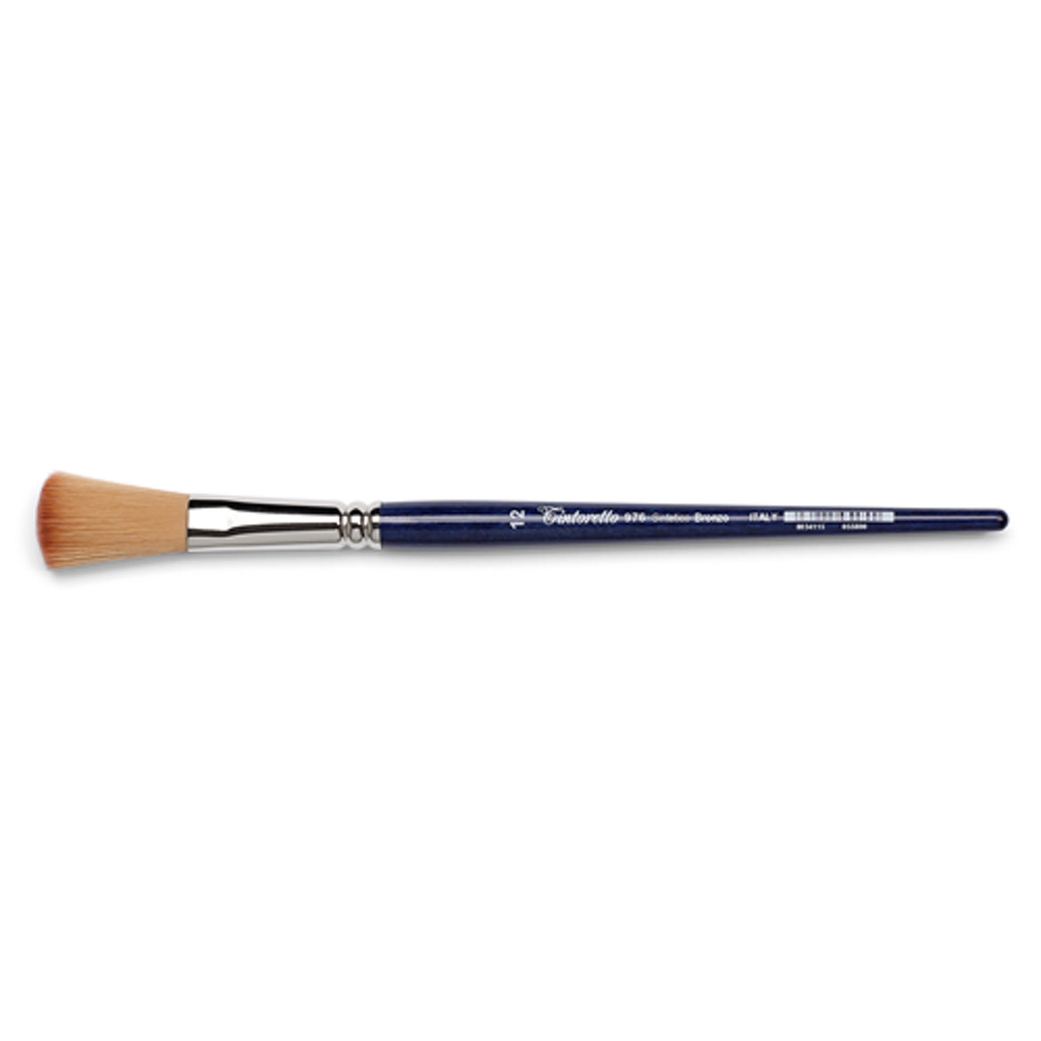 Pennello Astuccino, sintetico Bronzo. Ghiera in ottone nichelato. Manico corto di legno verniciato blu.