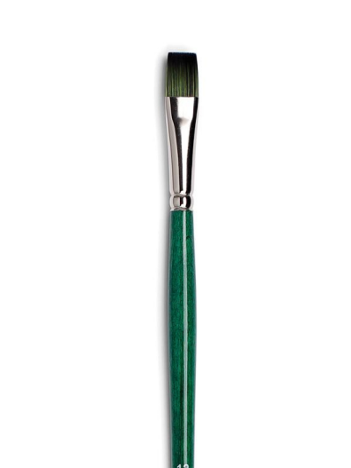 Pennello tondo, sintetico Smeraldo. Ghiera in ottone nichelato. Manico corto di legno verniciato verde.