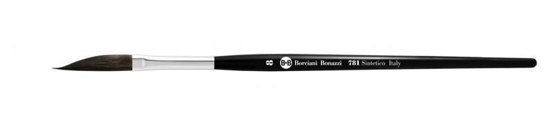 Borciani e Bonazzi - Pinstriping Collection serie 781, pennello a punta piatta, in filato sintetico HIDRO®, ghiera ottone nichelato, manico regolare in legno di betulla laccato nero.