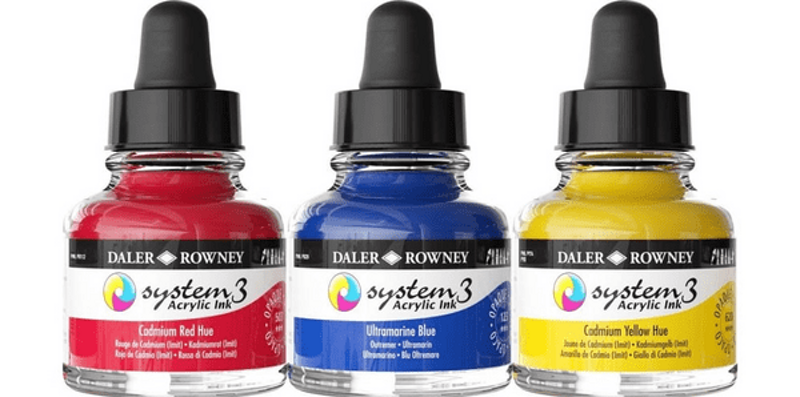 Daler Rowney - System3 acrylic Ink - Inchiostro acrilico opaco a base di pigmento, adatto a tutte le superfici. Resistente all'acqua quando asciutto. Se utilizzato su tessuto, fissare con ferro da stiro caldo senza vapore, a temperatura adatta al tessuto. A base d'acqua. Vasetto da 29,5 ml.
