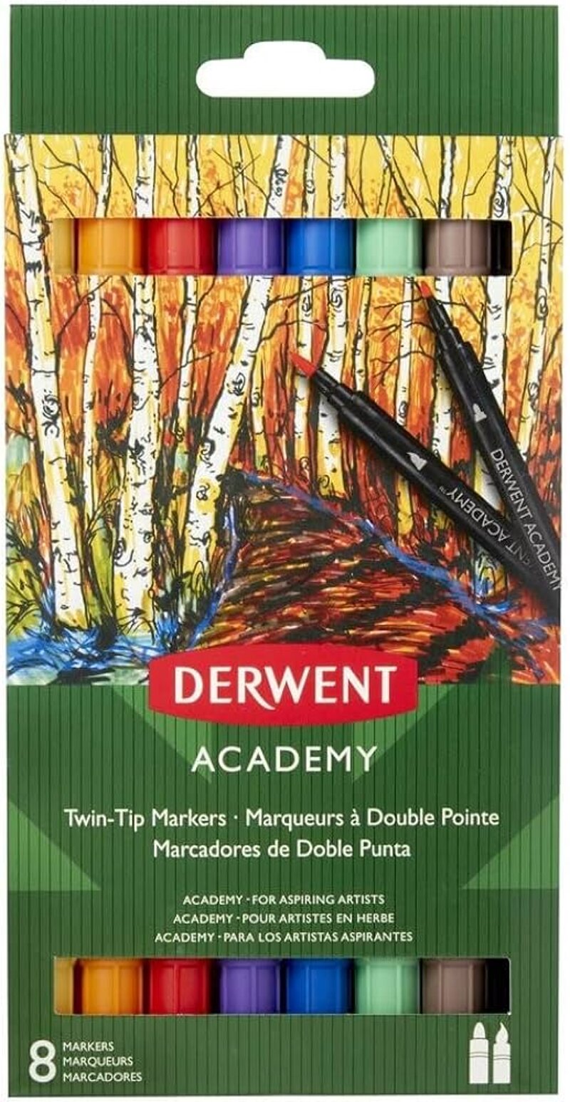 DERWENT - Academy Twin-Tip Markers - 8 Pennarelli a doppia punta.