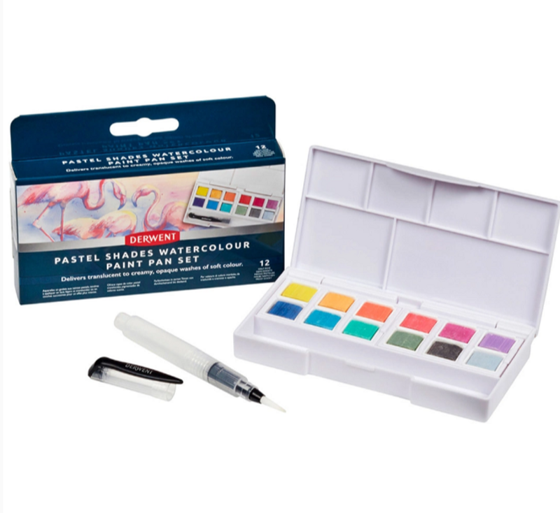 DERWENT - Pastel Shades Watercolour Paint Pan Set - Set acquerelli toni pastello 12 colori