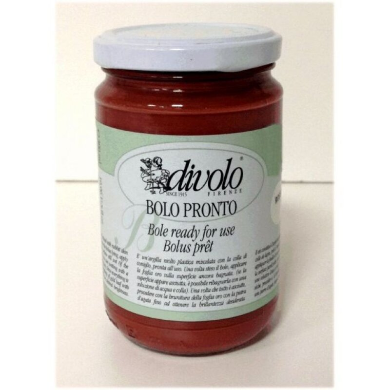 E’ un’argilla molto plastica miscelata con la colla di coniglio, da scaldare a bagnomaria. Una volta steso il bolo, fare asciugare e bagnare con una soluzione di acqua e colla. Applicare la foglia oro sulla superficie ancora bagnata. Una volta che tutto è asciutto, procedere con la brunitura della foglia oro con la pietra d’agata fino ad ottenere la brillantezza desiderata.