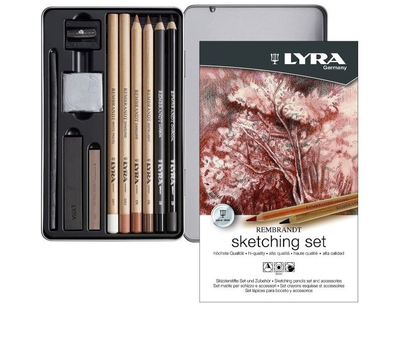 LYRA Germany - Sketching Set - Confezione in metallo con matite per schizzo e accessori di alta qualità.