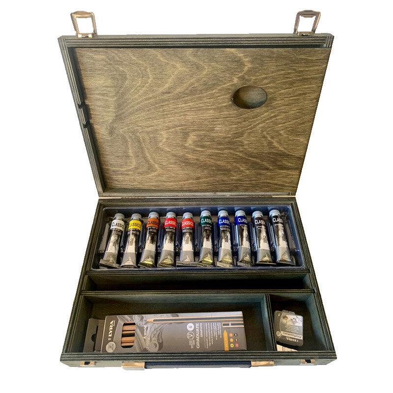 MAIMERI - Classico - Kit per pittura ad olio, cassetta in legno vintage.