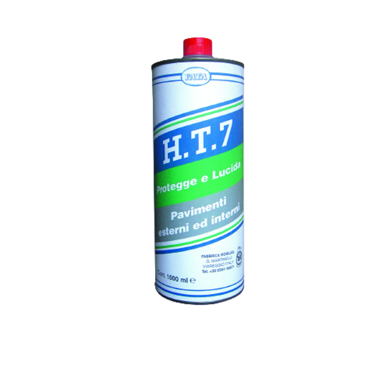 È formulato per la manutenzione delle superfici calpestabili. Protegge, lucida, impermeabilizza ed ha un effetto antispolvero. Può essere applicato su ogni tipo di pavimento nuovo o usato ad eccezione di quelli lucidati e piombo o legno. Per la sua particolare formulazione HT7 può essere usato con buoni risultati anche su pavimentazioni poste all'esterno, meglio se parzialmente riparate. Non necessita di lucidatura.